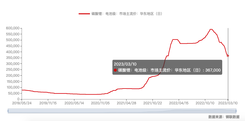 截至发稿,碳酸锂价格已经跌至36.3万/吨。