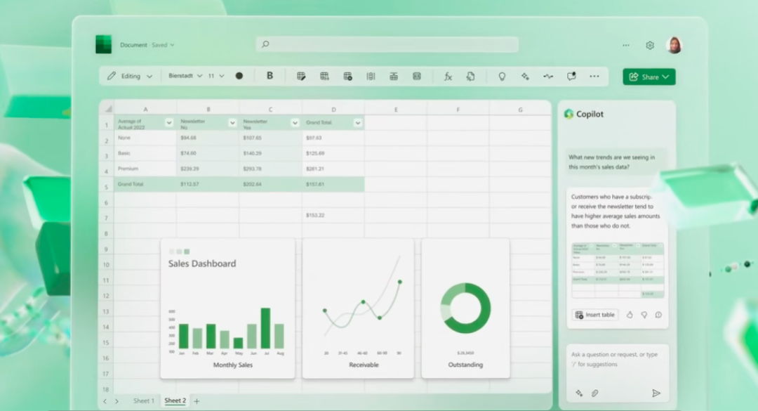 连复杂的Excel都有救,公式记不住没关系,告诉Copilot想要什么就好,分析数据,自动生成图表,几秒就完事,然后开始摸鱼(不是)。