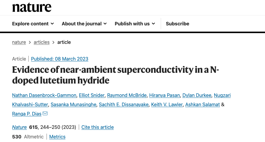最终Ranga Dias和团队的论文在去年9月26日被《自然》杂志撤稿,理由是研究人员在研究关键数据处理、分析的有效性上存在违规行为。