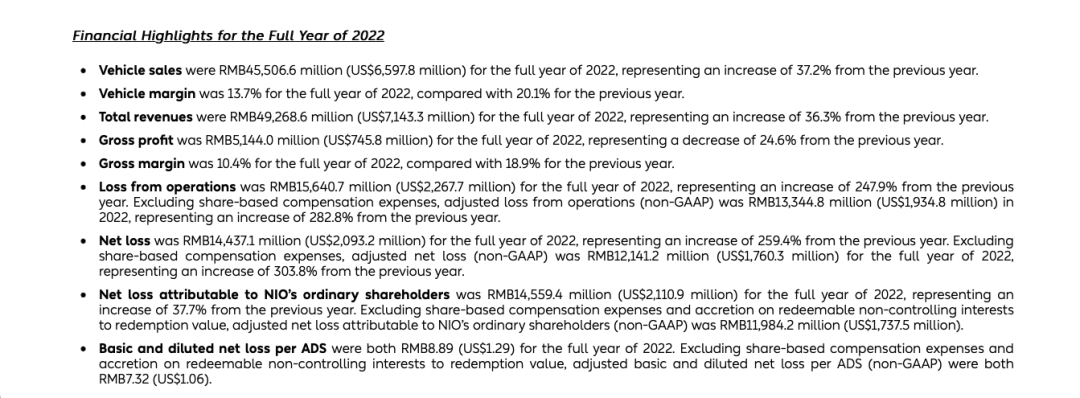 本月初蔚来公布了2022年第四季度和去年全年财报数据,数据显示,2022年全年蔚来总营收492.7亿元,同比增长36.3%。