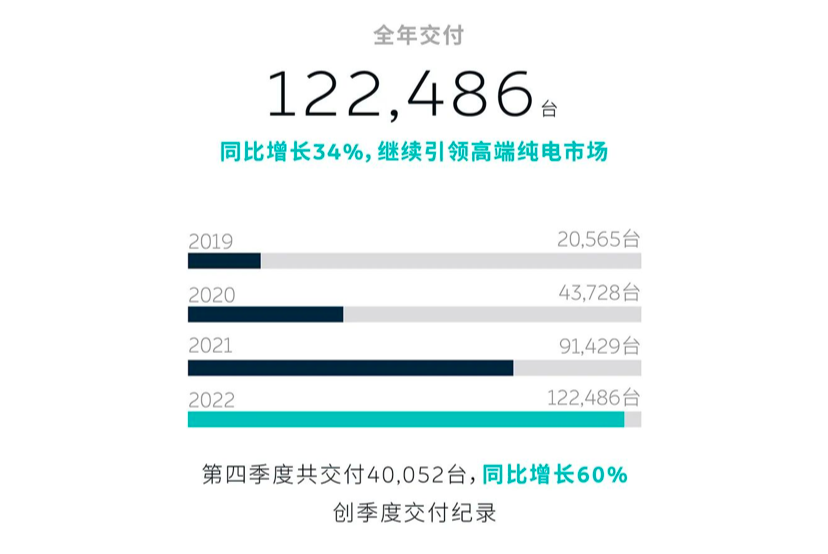 去年蔚来共交付新车122,486辆,虽然同比增长34%,但并没有达到年初定下的15万辆以上的目标。