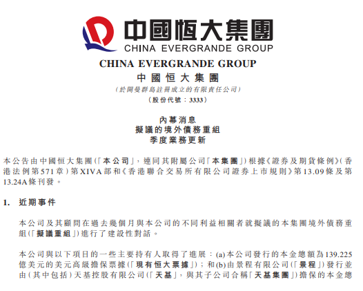 恒大表示,本次境外债重组主要条款的签约,意味着重组即将成功。但这依旧是一个假设,假设重组成功,也就一并解除了香港法院判令清盘的风险。