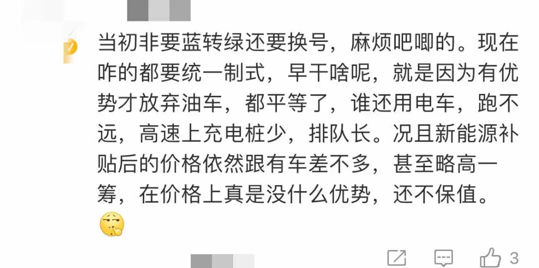 也有网友表示,“新能源车没有优势,就是纯大韭菜了”、“没便宜可占,我选新能源车干啥?”