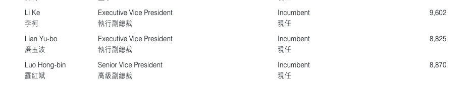 除此之外,还有三位高管年薪破800万,分别是廉玉波、罗红斌、以及何龙,这三位都是技术端出身,也都是比亚迪的老将。