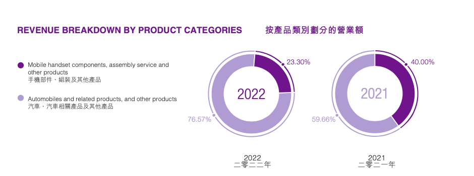 第二是手机部件及组装业务,在2022年营收为988.15亿元,同比增长14.3%,占据总营收的23.3%。