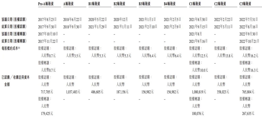 2021年知行科技又开启了C轮融资,招股书显示,C轮融资合计规模约6.16亿元。其中,C1轮融资2.7亿元,对应估值22.7亿元。C2轮融资9850万,对应估值25.99亿元。C3轮融资2.475亿元,对应估值为33亿元。