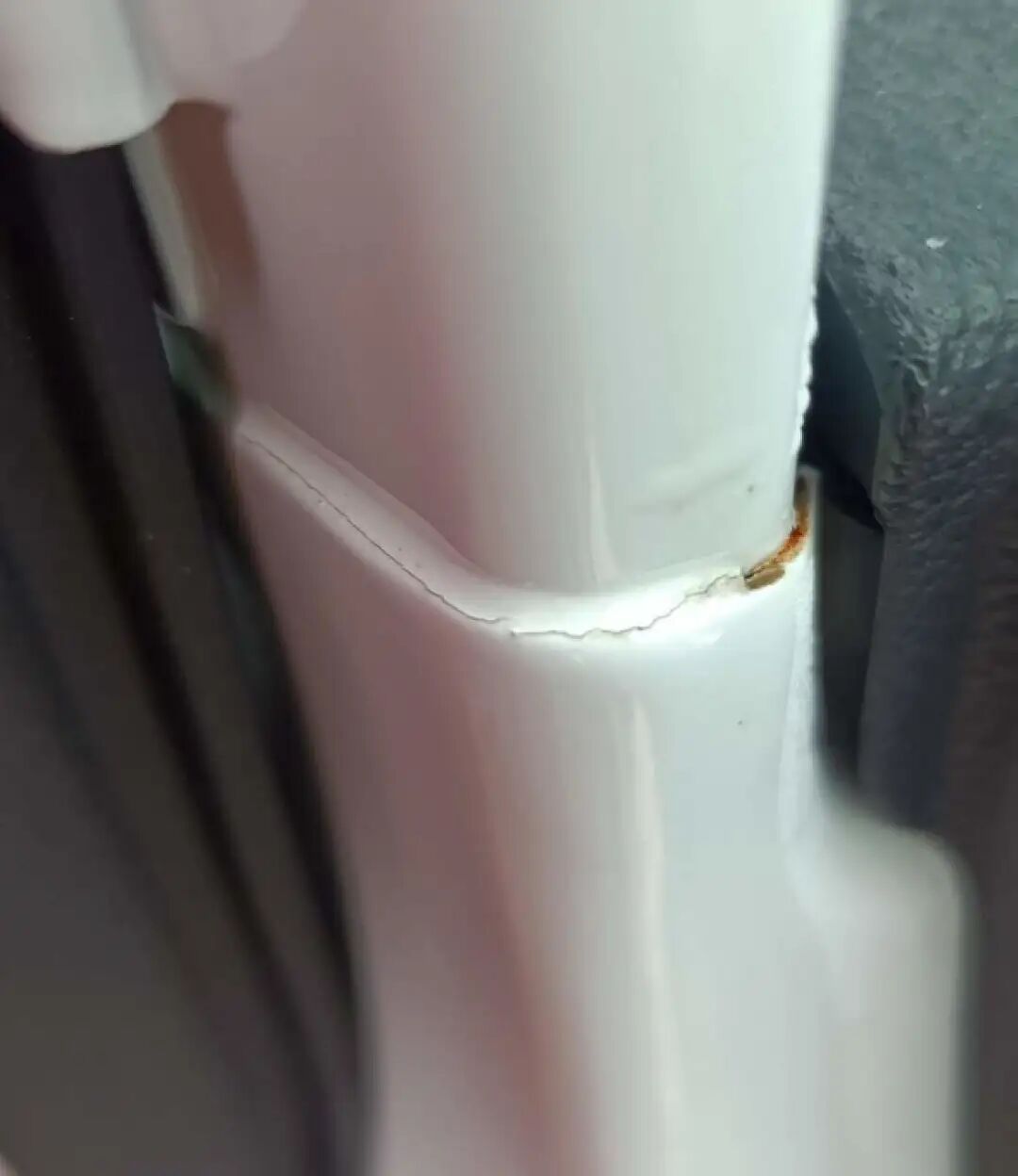 今年2月以来,刘颉开始发现问题,比如四个车门在同样的位置都裂了,还有生锈的迹象,当时就不断的有人告诉他,威马快倒了,有些问题都是自己掏钱修的。不过当时他那边4S店运营还是正常,也没多想。