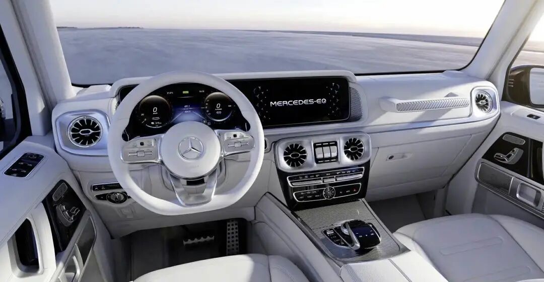 内饰方面将科技的与豪华融合展现淋漓尽致,EQG概念车沿用了现有奔驰大G的设计语言,奔驰全新样式的大联屏设计也得以保留,三幅式多功能方向盘等G级车的经典元素也没有缺席。
