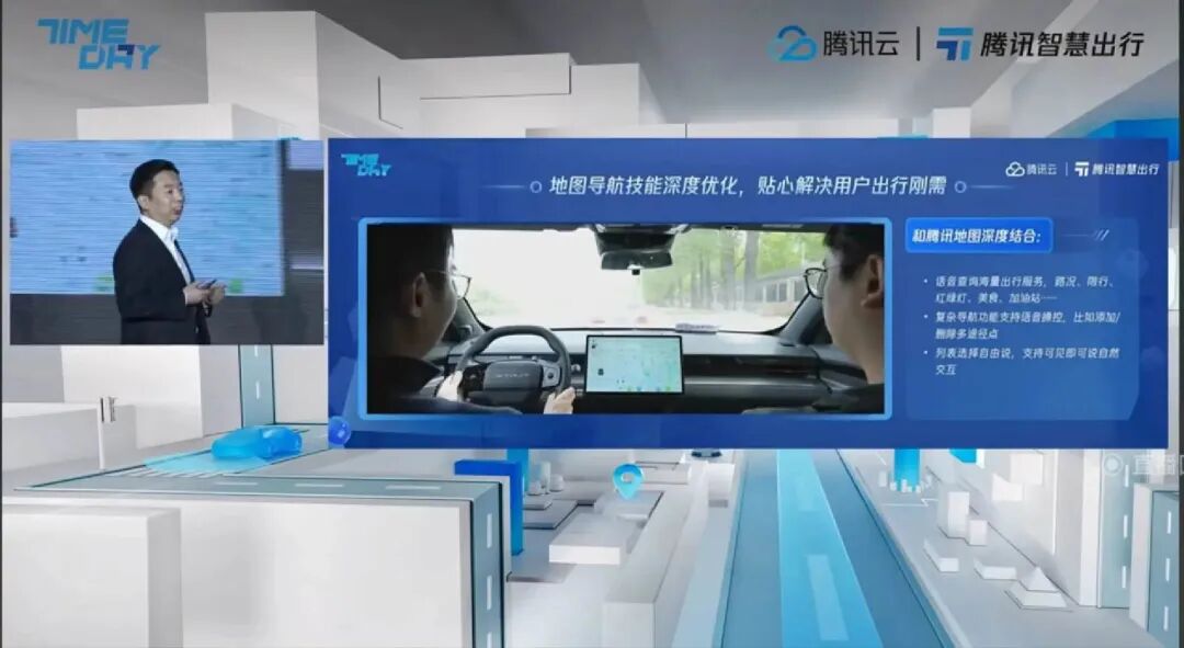 在本次“TIME DAY”,腾讯重点介绍了AI技术在智能座舱上的使用。腾讯云副总裁李学朝带来了全新升级的腾讯云智能车载语音助手,让人车交互体验更加有温度、有效率。