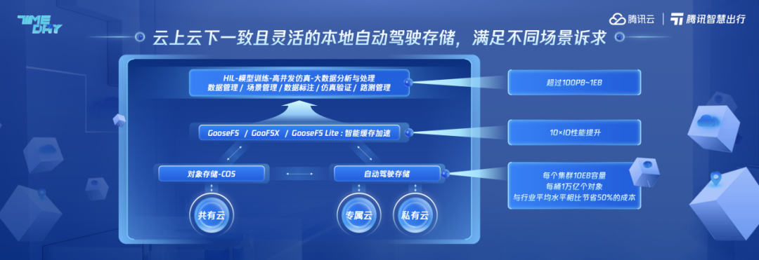 新的云上、云下一体化的自动驾驶存储方案,基于腾讯YottaStore分布式存储架构,实现单集群、单桶容量达10EB,存储对象数量达10万亿,能够节省 50%的存储成本。