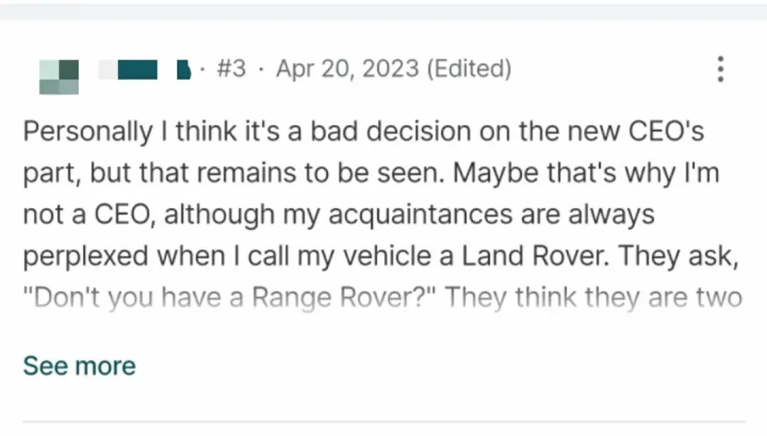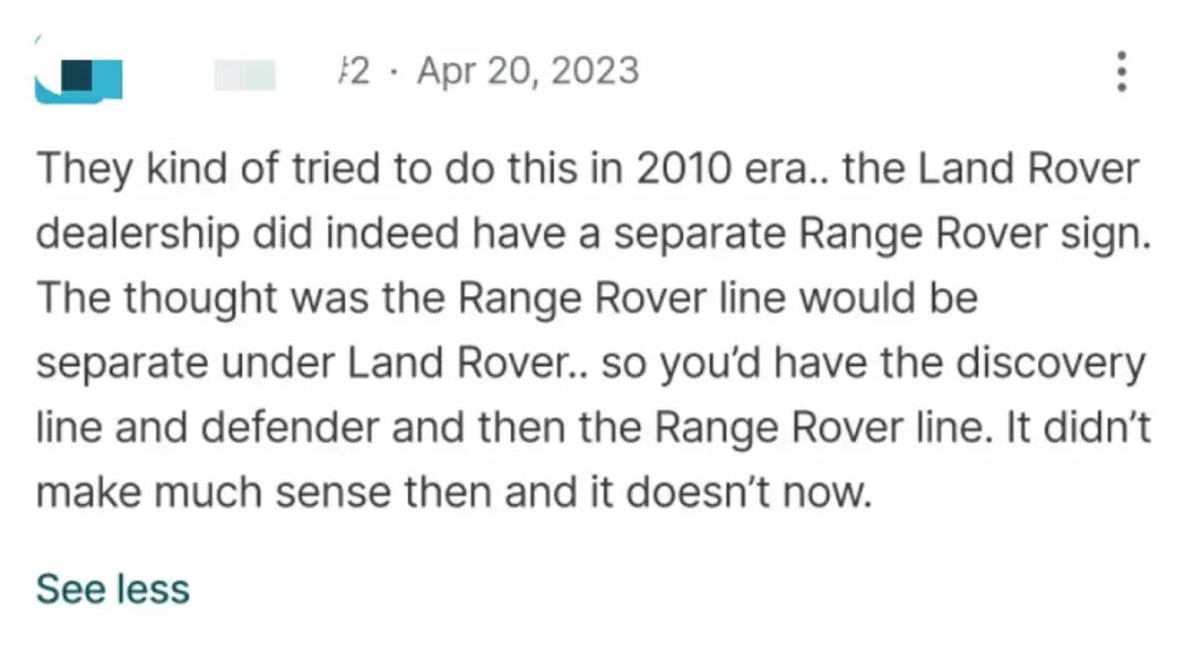 “我个人认为新CEO的决定是错误的,但还有待观察。”网友表示,尽管会称自己的车辆为路虎,我的朋友们总感到困惑,他们会说,你没有揽胜吗?他们会认为这是两个品牌。