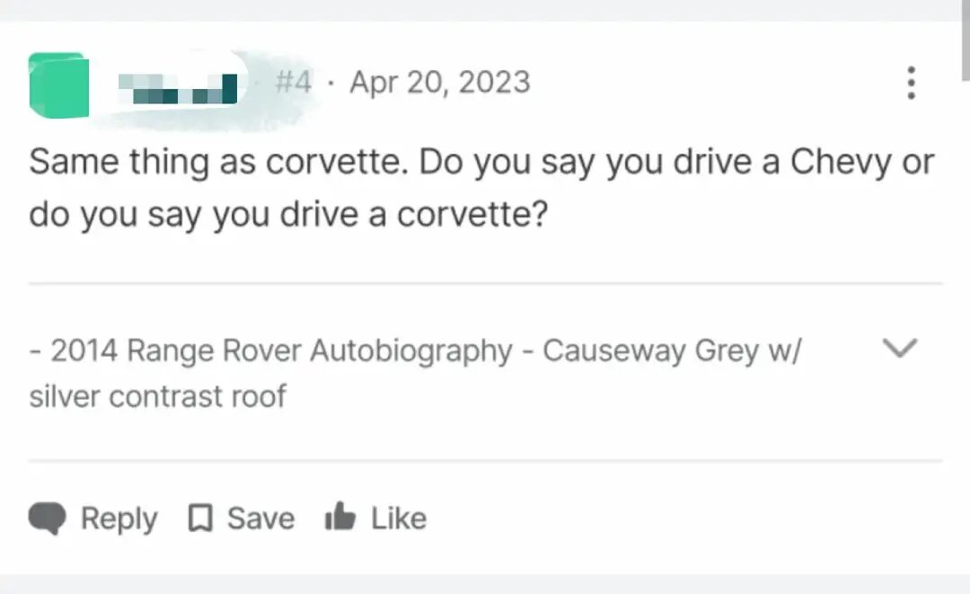 也有人表示,就算这次不更改名称,也早有一些人是这样叫的,这位路虎车主说道,“6年来没有人问过我的路虎在哪,他们会说,你的路虎揽胜在哪里?”