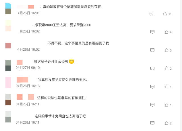 而#求职者嫌8000工资太高要求降到2000# 这个话题已经逗乐了网友,有人称“这放在整个招聘届都是炸裂的存在”、“简直不要太离谱”、“有被震撼到”……