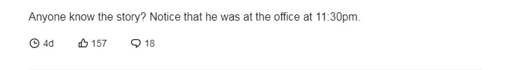 有网友表示:“有人关注到他自杀的时间和地点吗?晚上 11:30 在办公室。”;“自杀并非任何单一因素造成的,也许工作的压力是压垮这个人的稻草。”