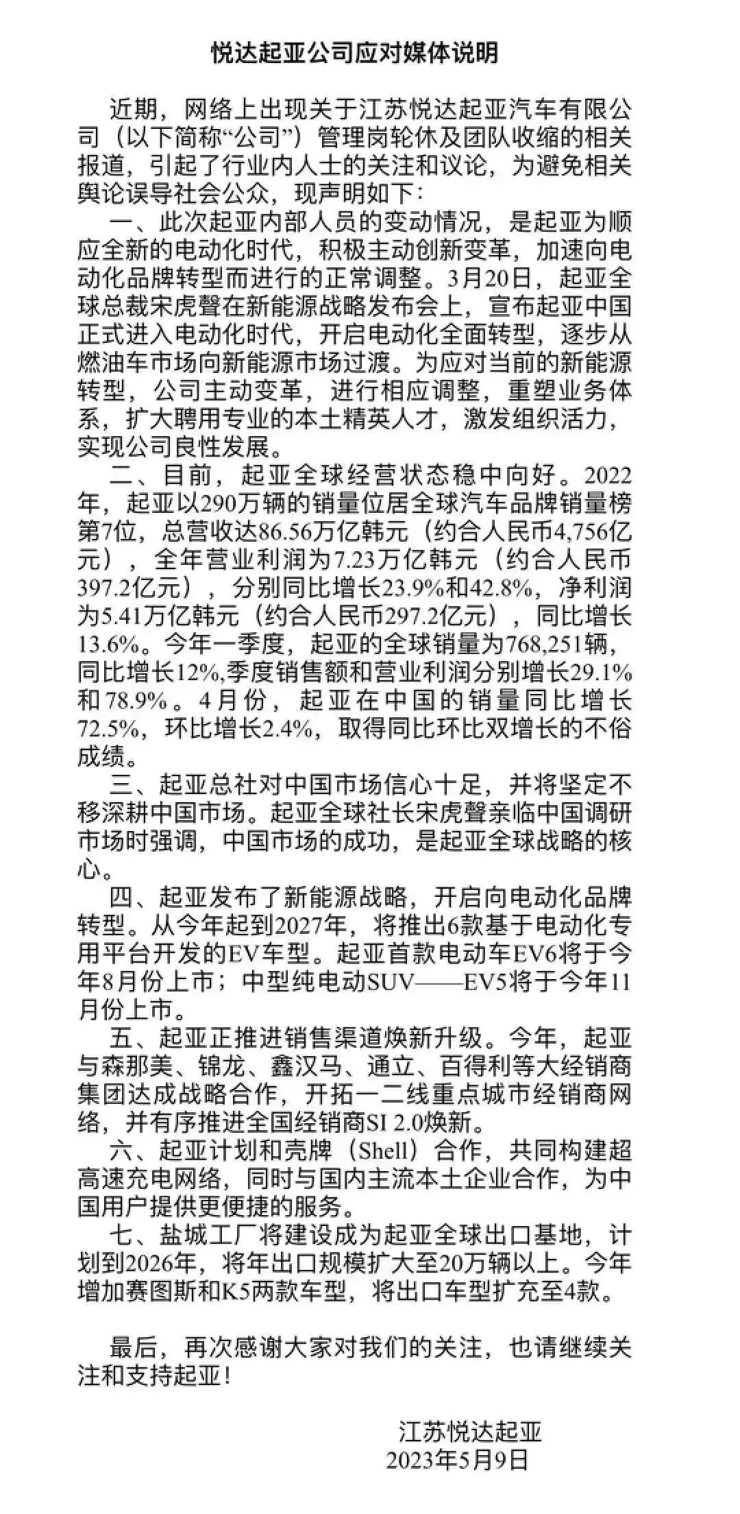 不过悦达起亚很快发布一则声明,称这是为了顺应电动化时代,主动做出的积极变革,公司同时也在加大不同模块管理岗的招聘力度。