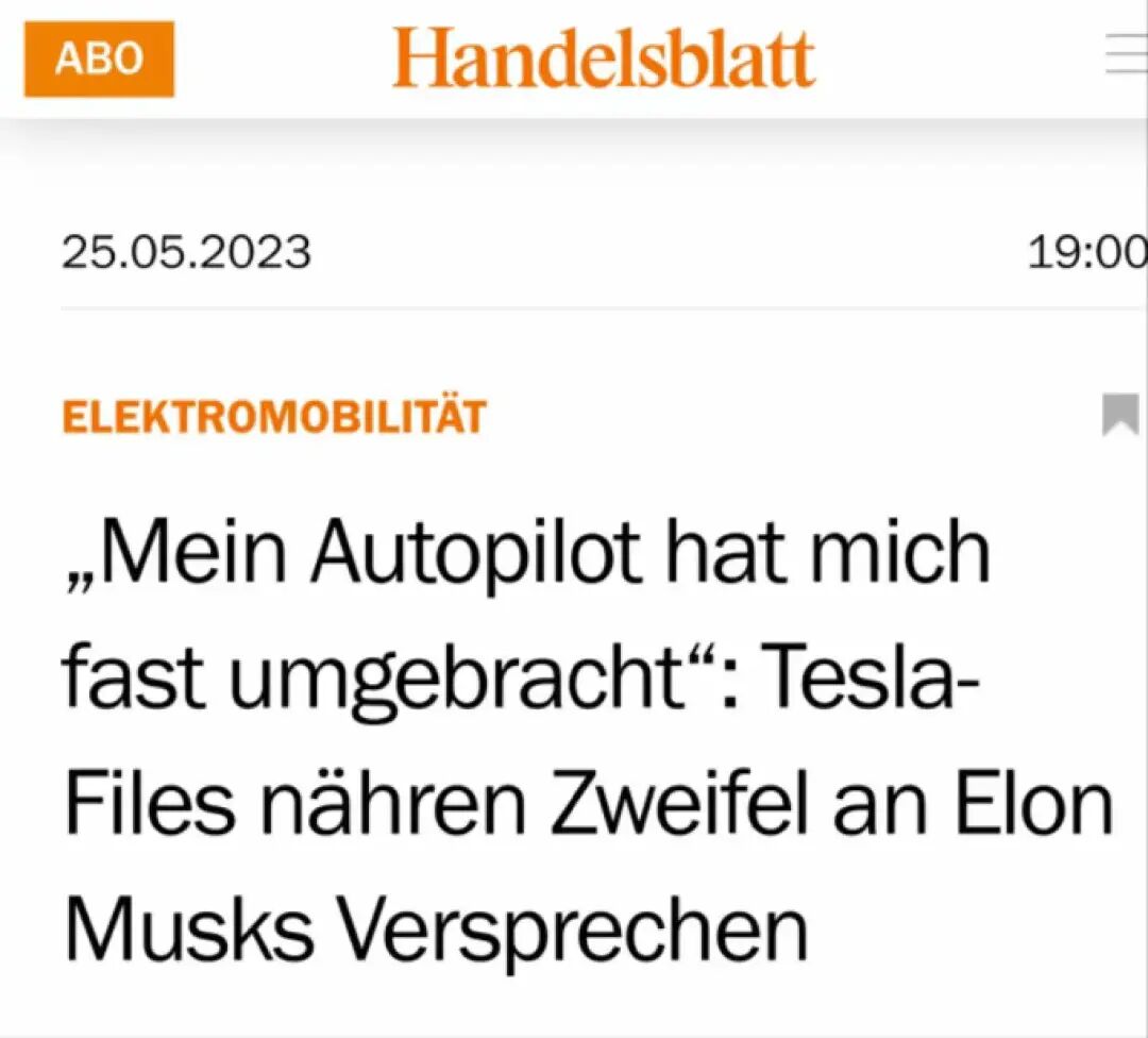 而德国商报在报道这件事的时候,用了一个非常醒目的标题:我的自动驾驶系统差点要了我的命。