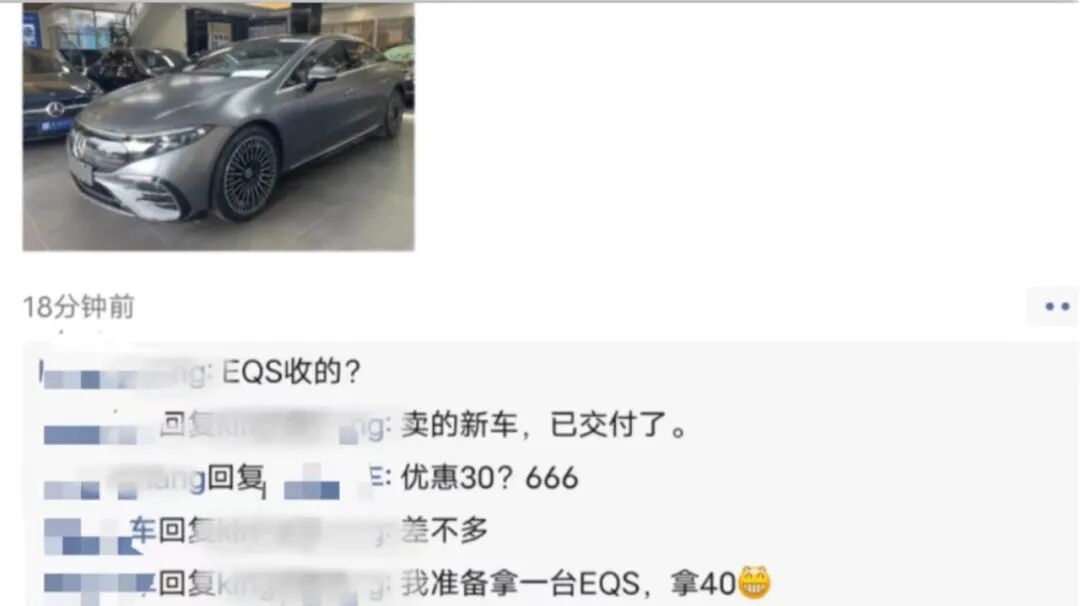 比如福建宁德一家奔驰4S店直接公开放话,奔驰EQS降价10万。
