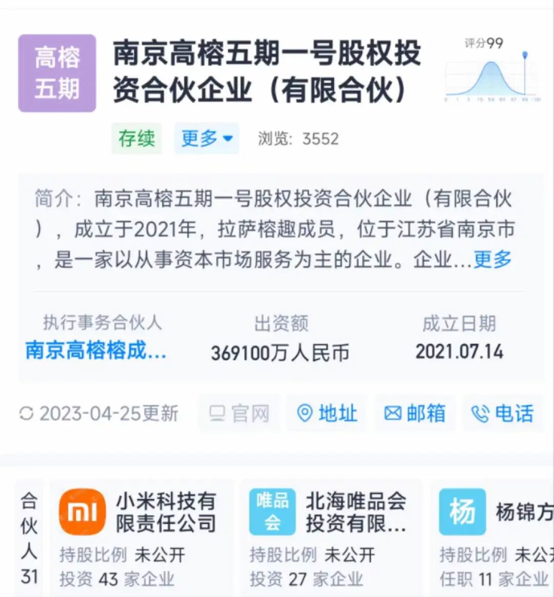 还有小米科技有限责任公司合伙创办的南京高榕五期一号股权投资合伙企业,以及经纬中国创始团队成员左凌烨旗下的经纬(杭州)创业投资合伙企业。