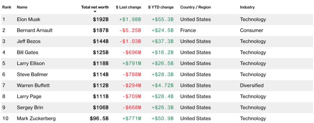最新彭博亿万富翁指数显示,马斯克的财富达到了1923亿美元,超过奢侈品巨头LV MH创始人贝尔纳·阿尔诺,后者财富约为1866亿美元。