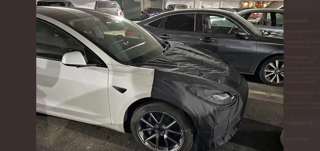 根据推特用户在平台上曝光的几张疑似新款Model 3的谍照图来看,新款Model 3的前后保险杠均包裹较厚的伪装贴纸,这也预示新款Model 3不仅内部组件发生变化,就连外观也会进行重新设计。