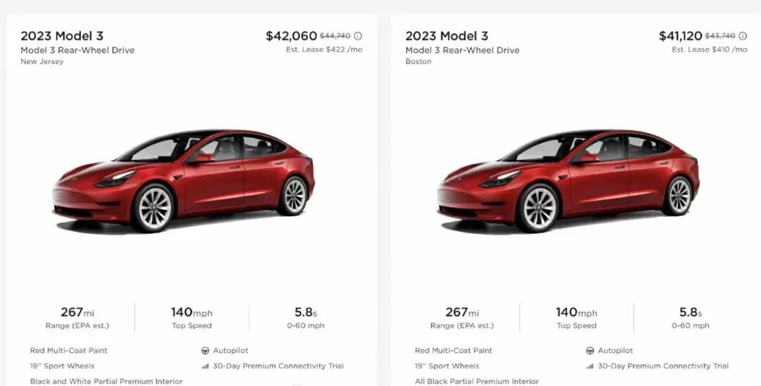 特斯拉在最近一年来,在北美市场对价格有了多次调整,2022年价格大幅增长之后,2023年的价格已经至少下调了6次。