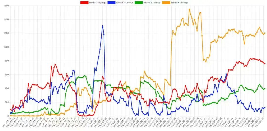 今年4月底,特斯拉在美国的库存不断攀升,比如Model 3 的库存量猛增50%,Model X 在美国库存超过1200辆,表现较好的是Model Y,降价之后库存减少一半。