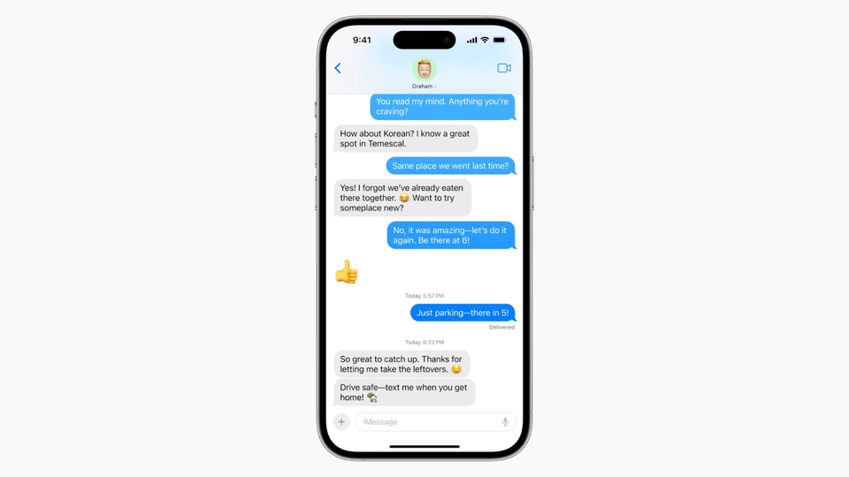 iMessage新增语音转录文字、位置共享、安全签到确认。其中签到确认(Check in)可以分享你的定位给亲人和好友,当你到家时候对方可以收到到家信息,还可以实时显示剩余电量。