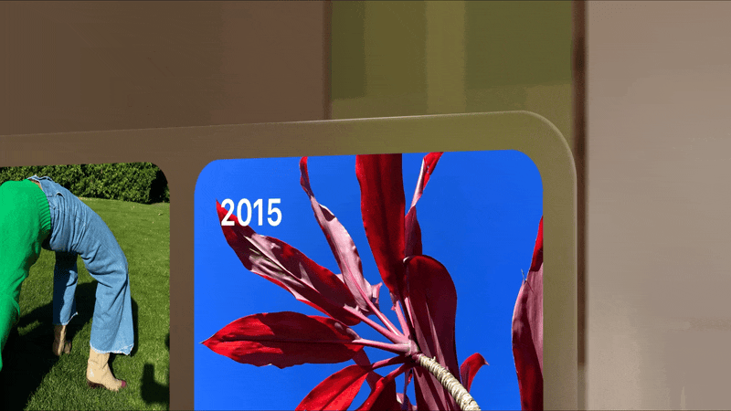用户可以在空间中缩放App界面,并随意摆放,多个App可以同时出现。而且界面和App图标都有体积、阴影和动态的光线变化形态,你可以感受到视觉元素真实的距离感和存在感。