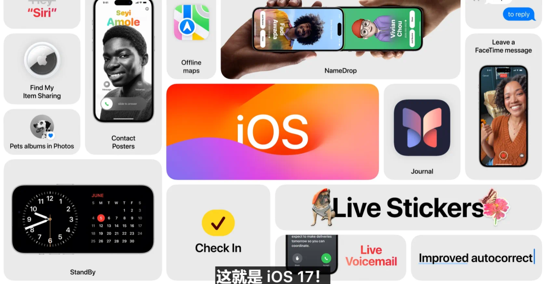 这次全新发布的iOS 17在UI和整体视觉风格上与前辈iOS 16基本类似,这次系统的升级换代主要集中在沟通和交流方面进行了八项值得一看的更新。