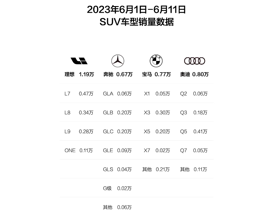 李想本人在转发官方发布的微博中评论到,“理想汽车这周仅通过三款SUV,超过了BBA任一品牌在中国市场全部SUV产品的销量总和。”