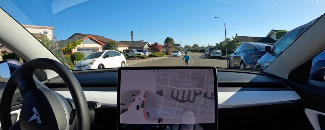 在测试中,先是帕克女儿站在马路中间,特斯拉以每小时五英里的速度向前行驶,FSD识别出了车辆前方的小女孩,随后开始减速并成功刹停,直到小女孩离开车辆的轨迹范围特斯拉才继续行驶。