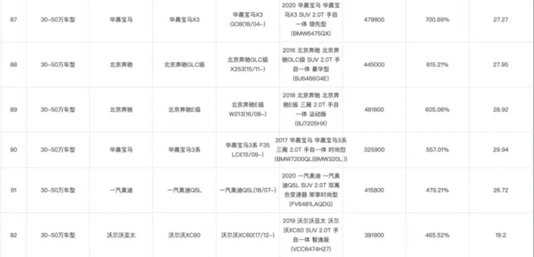 而拥有零整比系数较高的车辆多是一线豪华品牌,比如“从不坑穷人”的奔驰汽车C级的车型,零整比达到了惊人的823.87%。
