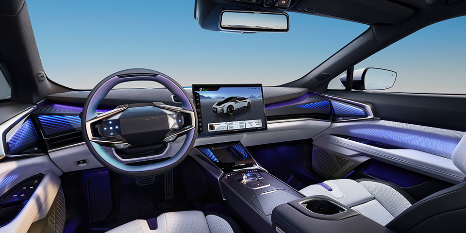 车内采用15.1 英寸OLED 超薄悬浮式触摸屏和12.6 英寸超薄主副驾屏的组合,首次搭载与汽车品牌合作的英国瑰宝级KEF音响,质感拉满。