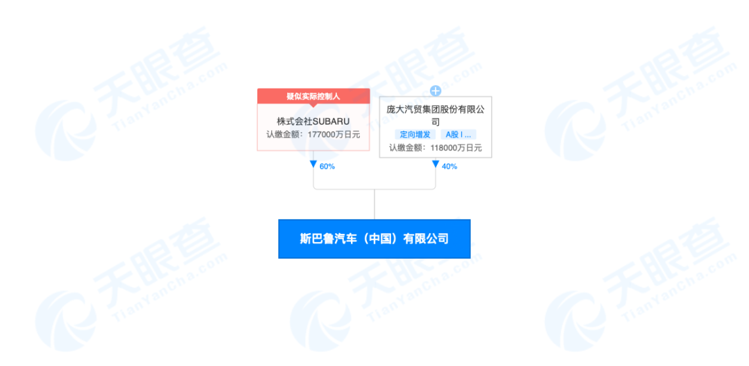 出资完成后,斯巴鲁持有斯巴鲁中国60%股权,而庞大集团持股40%,斯巴鲁中国也变更为中外合资企业。