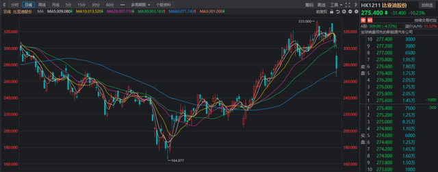 当时的比亚迪否认了这个有可能令它股价大跌的消息,但依然产生了一定的影响,消息传出当天,比亚迪A股跌4.72%,港股大跌11.93%。