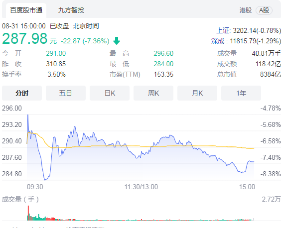 在巴菲特抛售比亚迪部分股票后,比亚迪股价一度跌破10%。截至发稿,比亚迪股价报291.02元,下跌6.37%。