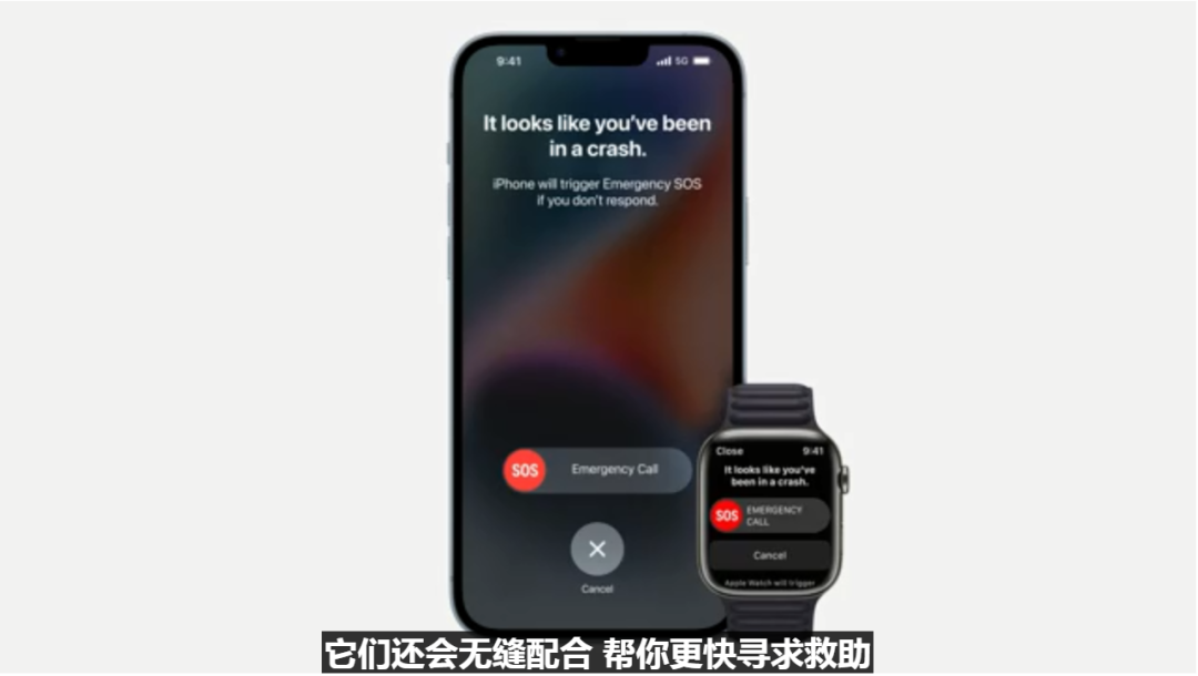 如果你佩戴同样有带车祸检测功能 Apple Watch 时 ,还可以和手机联动,实现无缝结合,发挥各自的独特优势。