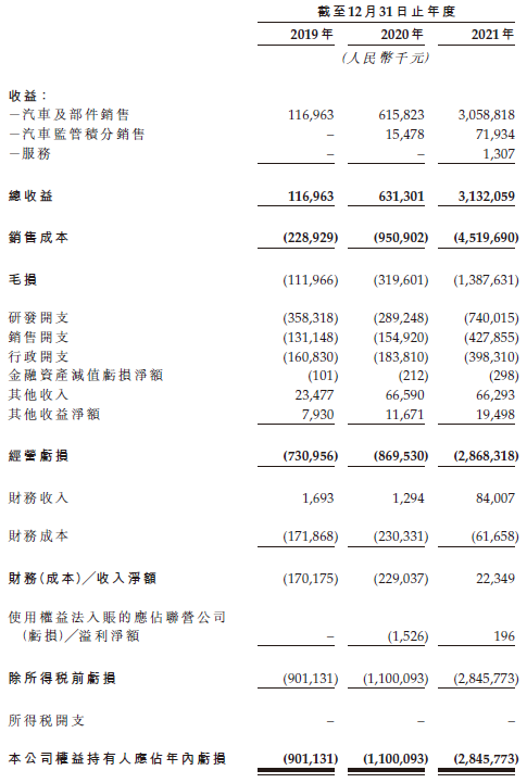 2019年-2021年,零跑营收分别为1.17亿元、6.31亿元和31.32亿元,同比增速在400%左右;但同期亏损也在持续扩大,2019-2021年,零跑净亏损分别为9.01亿元、11亿元、28.46亿元,累计亏损超48亿元。