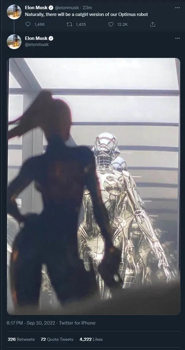 为了吸引眼球,马斯克甚至还提前放出消息,未来会有猫女版擎天柱机器人。