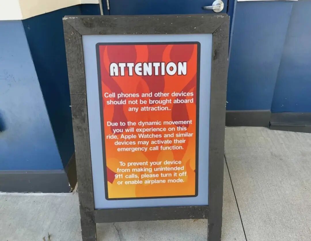 多莱坞游乐场甚至贴出了告示,要求大家在游玩项目时不要携带手机或者关掉手机。