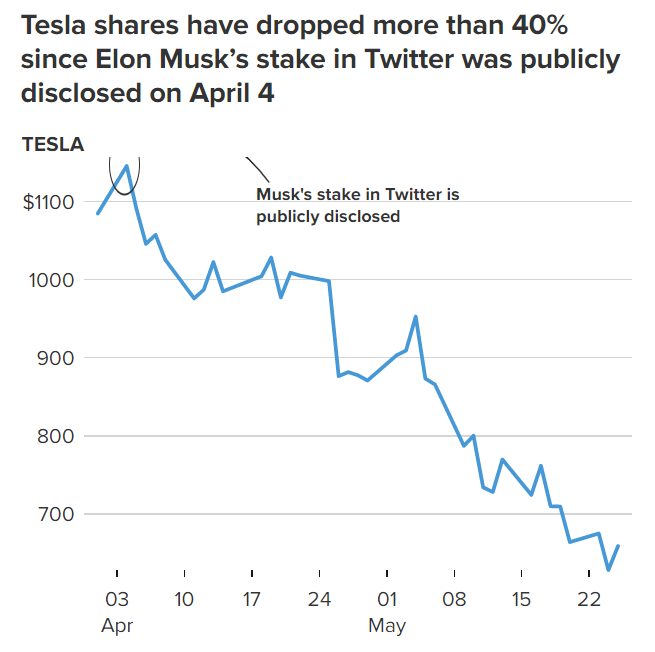 事实上,自从传出马斯克要收购推特以来,推特和特斯拉的股价都曾大幅下跌。