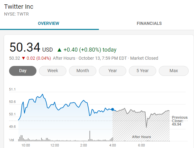 自10月4日,马斯克提议以每股54.2美元的原价重新恢复收购推特公司的消息传出后。