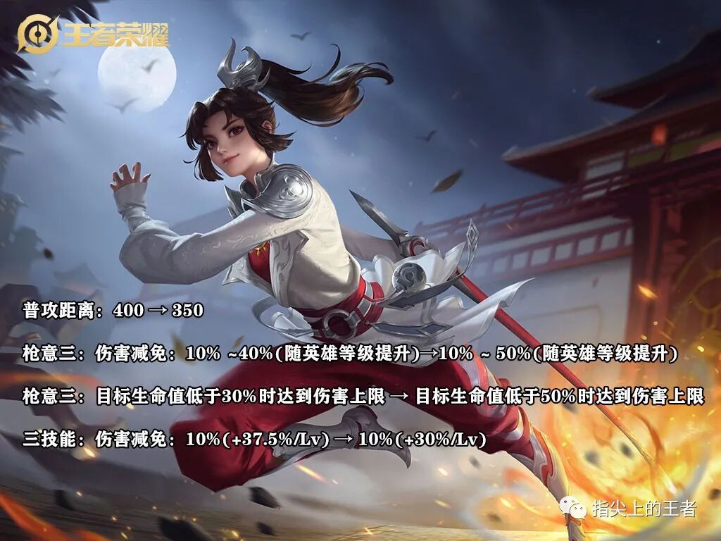 枪意三的伤害减免增加了10%,同时对斩杀的伤害上线进行了上调,从30%变成了50%,这次可以完美契合破军的伤害加成了,目前云缨虽然有些玩家玩的还不错,但是伤害不够的确是事实,这回最强的斩杀技能,终于不再刮痧了,这是对她整体伤害上的一个加强。
