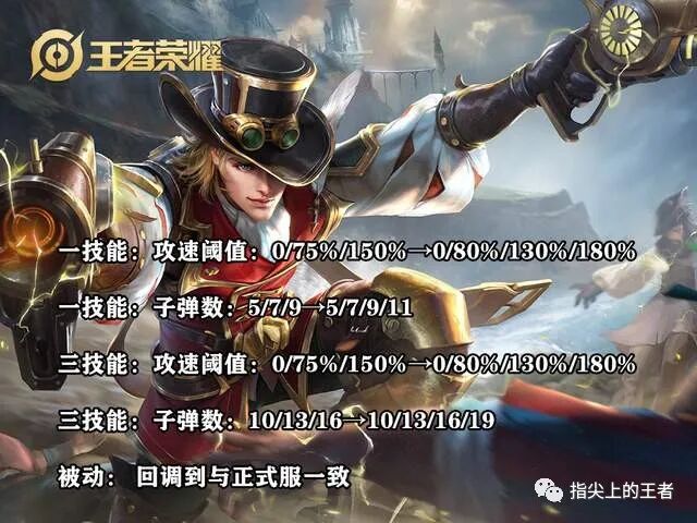 虽然说提升了5%的二档攻速,但是大家发现了没,同样是1技能9颗子弹,大招16颗子弹的档位,正式服需要150%的攻速才能达成,而体验服调整后130%攻速就能达成,这意味着马可波罗的技能成型速度会更快,可能还没到衰弱期,就因为子弹数量提升而来到了第二个强势期。