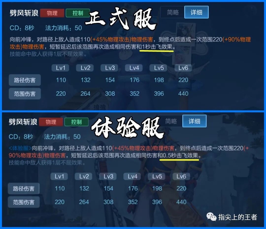 正式服孙策1技能可以对目标造成1秒的击飞控制,所以孙策大招加1技能和晕眩最多能够自控超过2.5秒的时间,这一个完整的控制链都是来自一个英雄,这是很可怕的事情,也因此才控制孙策的伤害量,不敢给太多,但是现在进入体验服,却发现这个数据改了,1技能的控制从一秒,变成了零点五秒,直接折半,而这个数据并没有在公告中看到。