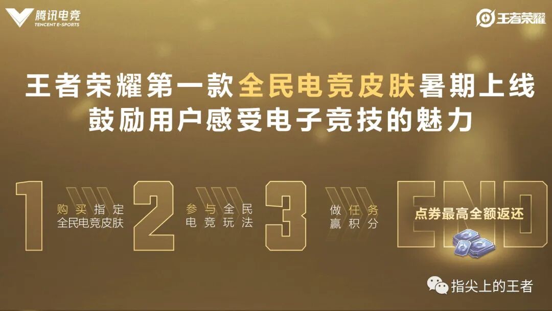 个人是有永曜之星的,所以对这个皮肤的欲望并没有那么强烈,而该皮肤使用了一个全新的玩法,购买皮肤之后参与做任务,最终点券可以全额返还,大致猜一下,既然是电竞皮肤,那肯定是通过比赛来达到一个不错的成绩,之后根据你所达到的位置来返还相应的点券,如果你是高手,皮肤可以白拿。