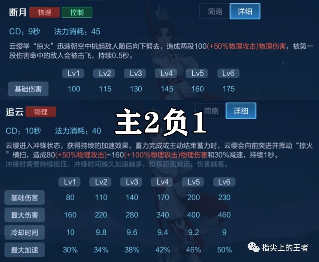 看一个英雄的主点技能,其实就是看哪个装备的收益比较大,云缨1技能升级只能增加30点物理攻击,而2技能升级,除了有更高的伤害外,还有更高的加速、冷却缩减,因此云缨应该是主2技能的。