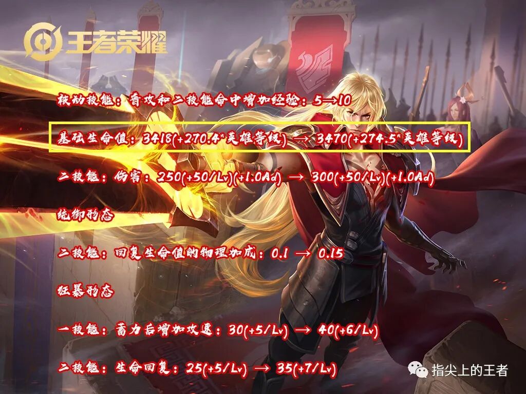 基础生命值提升52点,等级成长增加4.1,所以满级一共增加了109点生命值,这样的调整方式让我想到了当年的花木兰。