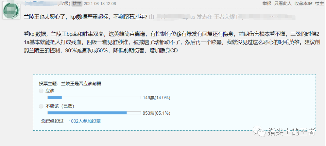 本赛季kpl的英雄胜率,除却前边几个出场率并不算多的英雄,兰陵王有着100多场的出场率,胜率却高达62%,因此有玩家发帖表示这个英雄是超标的状态,那么我们理性分析一下,兰陵王真的超标吗?
