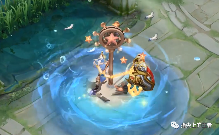2技能就像一团水爆开一样,在水中会出现海星,和强化普攻的效果差不太多,但不至于看起来很难受,不过这个特效会在释放的原地存留一段时间,而不是和其他皮肤一样,只有一个护盾。